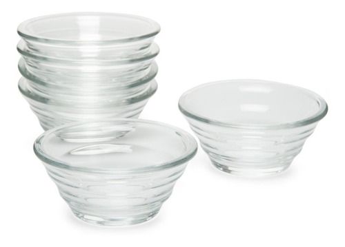 Set compuesto por 6 unidades de MINI BOWLS de vidrio Medidas: diametro 10 cms / altura 4,5 cms. Gastroboutique Pasabahce Profesional Use. Vidrio muy resistente. Ideales para todo tipo de DIPS Marca : PASABAHCE Origen : TURQUIA
