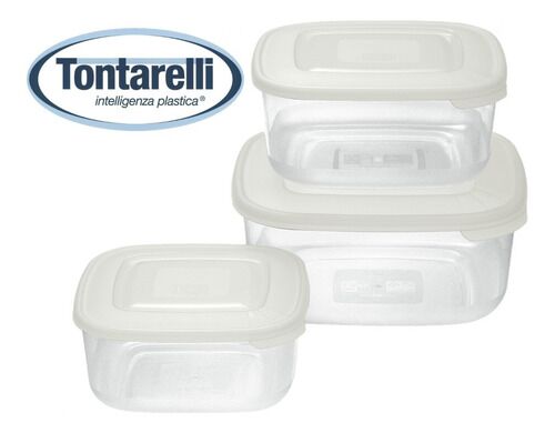 Set compuesto por 6 hermeticos Plasticos Italianos Tontarelli de la mas alta calidad europea. Uno de cada medida : - 2 unidad de Capacidad : 2,5 litros . Medidas : 18,5 x 18,5 x 9 cms - 2 unidad de Capacidad : 1,50 litros . Medidas : 15,5 x 15,5 x 7,5 cms - 2 unidad de Capacidad : 0,95 litros . Medi...