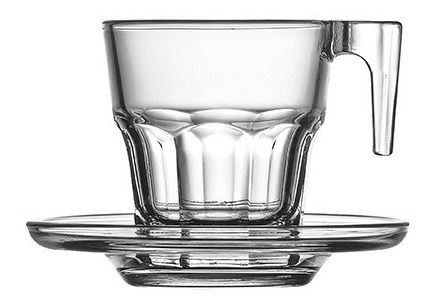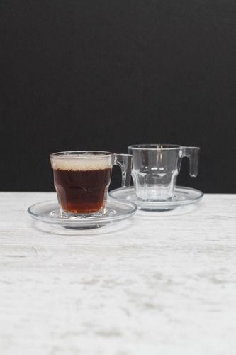 Set x 6 tazas con plato en vidrio PASABAHCE Para cafe espresso , son chiquitas Capacidad : 70 cc Este conjunto increíblemente elegante impresiona con su diseño moderno e intemporal y sin duda será el foco en su propia casa. Si usted disfruta de su espresso por la mañana opor las tardes después de ce...