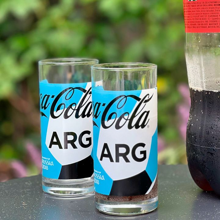 Set x 8 Vasos de Vidrio con logo Coca Cola Mundial Argentina Medidas : Altura: 13 cm / Diámetro : 6cm Capacidad: 245 cc Material: Vidrio estampado con logo Coca Cola , Argentina , FIFA WORLD CUP 2018 Marca : Pasabahce Origen: Turquía -------------- ¡Brinda con estilo en cada celebración! Estos vasos...