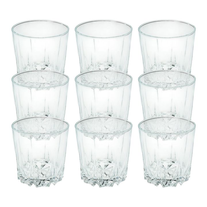 Set x 9 Vasos Whisky Tragos Agua de Vidrio Karat Pasabahce Dimensiones: *Alto: 8.5cm *Diámetro: 7.5cm *Capacidad: 295cc Origen:: Egipto Marca: Pasabahce Cantidad de piezas: 9 unidades Material: Vidrio Sodalime Apto Lavavjillas Apto : Heladera ----------------- Cada vaso cuenta con un diseño cuidados...