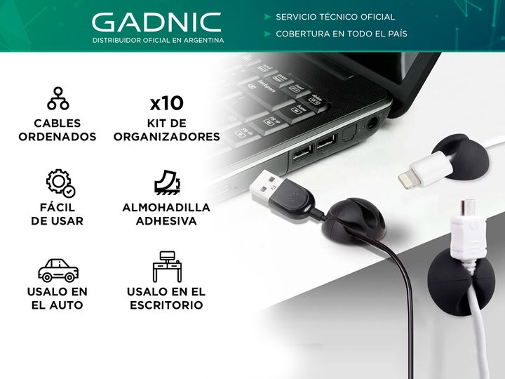 Nuevo Set de 10 Organizadores De Cables Gadnic Mantené ordenado y limpio tu lugar de trabajo: Ayudará a evitar los enredos de cables y cordones alrededor de su computadora, TV, Cables de alimentación, archivadores, Tablet/iPad, celular, convirtiendo un espacio más agradable y más seguro. Almohadilla...