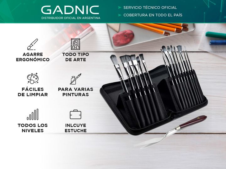 ¡Ideal Kit De 17 Pinceles Para Artistas Gadnic! ¿Eres un artista que busca una herramienta de calidad para llevar tus obras de arte al siguiente nivel? Si es así, estás en el lugar correcto. Te presentamos nuestro Kit de Pinceles X17 para Artistas, diseñado para satisfacer todas tus necesidades de p...