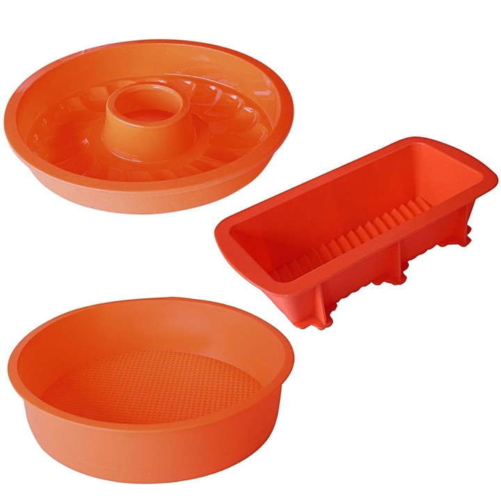 <p><em>*Medidas:</em><br /><em>Molde Flanera: Alto 7cm / Diametro 24cm</em><br /><em>Molde Tortera: Alto 6cm / Diametro 24cm </em><br /><em>Molde Budinera: Alto 6.5cm / Largo 24cm / Prof 10cm<br /></em><br /><em>- Apto para lavavajillas y microondas</em><br /><em>- Material: Silicon...