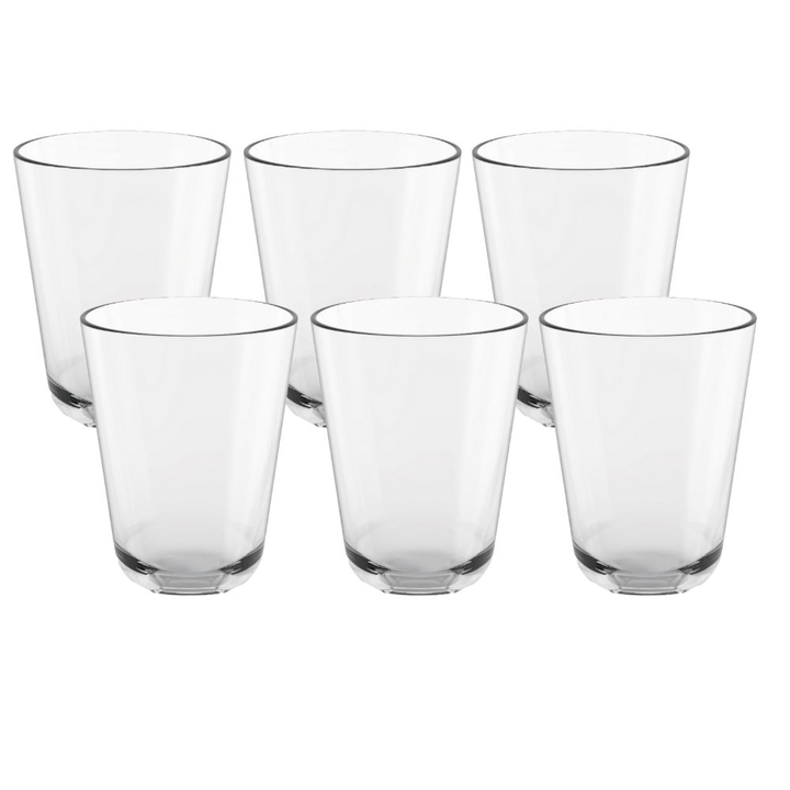 <p><em>*Medidas</em><br /><em> Altura 12cm</em><br /><em>Ancho 9cm Diametro 8.5cm</em><br /><em>Base 7cm</em><br /><em>- Capacidad: 392 ml</em><br /><em>- Material: Vidrio</em><br /><em>- Marca: Crisal</em><br /><em>- Origen: Mexico<br /><br /></em><em>Este set incluye:</em><br /><br /><em>-6u. de V...