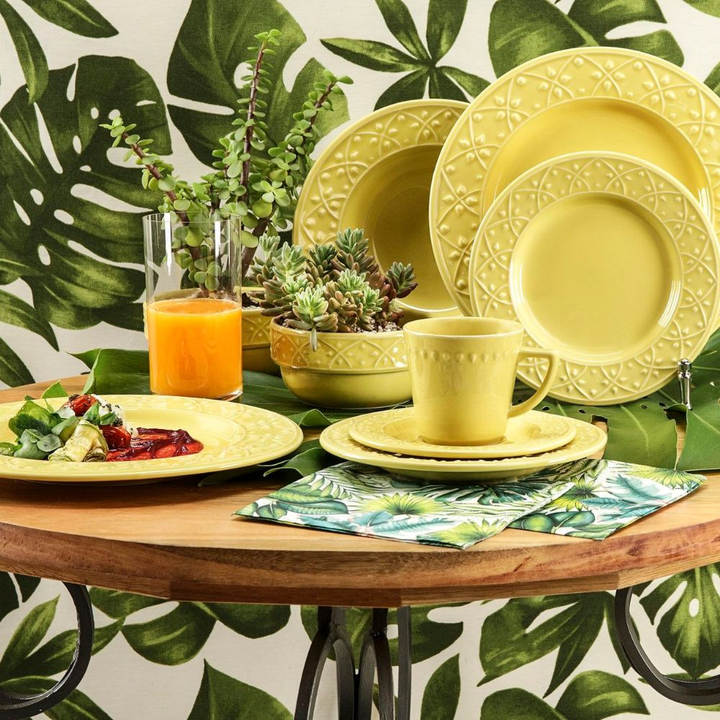 Oxford Daily ofrece platos y tazas con decoraciones en relieve una super tendencia en la configuracion de la mesa. Los diseños se inspiraron en pinturas mehndi que las mujeres suelen utilizar en las ceremonias de bodas indias. El color Sicilia esta inspirado en la frescura y la energia del limon s...
