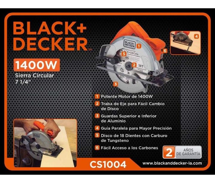 Sierra Circular Black Decker Cs1004 Mano Ingletadora 1400w Modelo: CS1004-AR Características: - Código: CS1004-AR - Marca: Black & Decker - Potente motor de 1400 watts - Traba de eje para facil cambio de disco - Guardas superior e inferior de aluminio - Guía paralela para mayor presición - Facil acc...