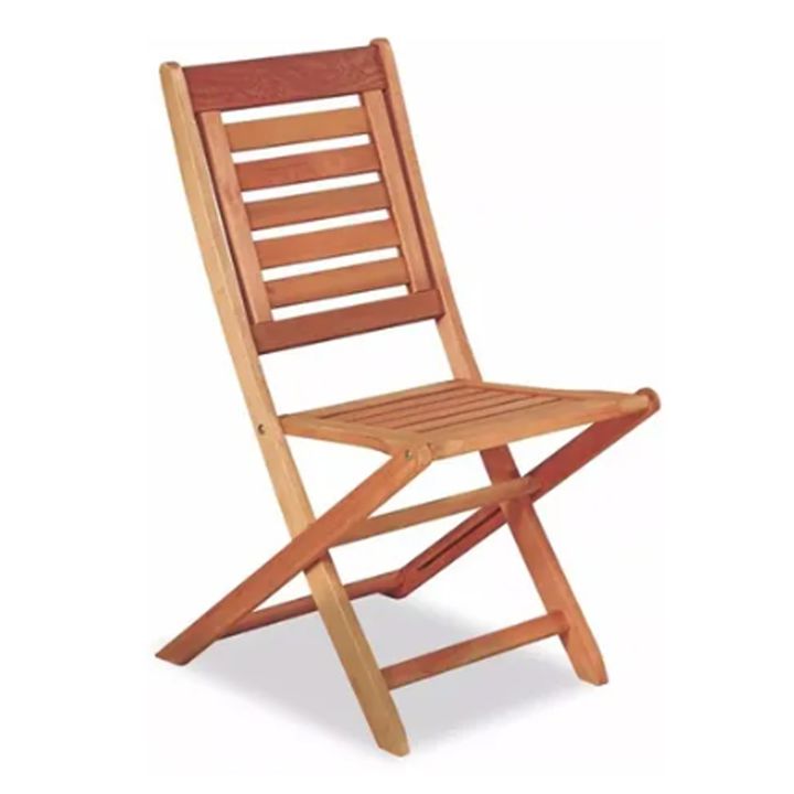 Silla de madera Eucaliptus Grandis macizo. Plegable. Madera Impregnada para su mejor mantenimiento y durabilidad. Alto: 0.90 mts. Ancho: 0.46 mts. Alto del asiento: 0.45 mts.