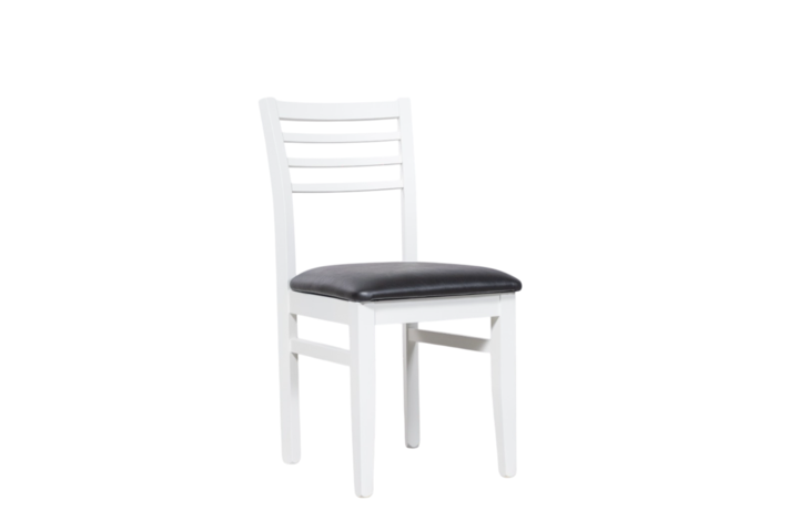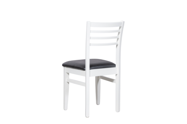 Detalles Silla Clásica: Madera maciza de Pino de alta calidad. Lustres (PU) Blanco. Tapizado (Eco Cuero) Crudo. Asiento de espuma con densidad de 22 Kg /m3, con espigado interno. Respaldo ergonómico. Medidas (ancho x alto x prof.) 0,46 x 0,46 x 0,91 m. Garantía 6 meses