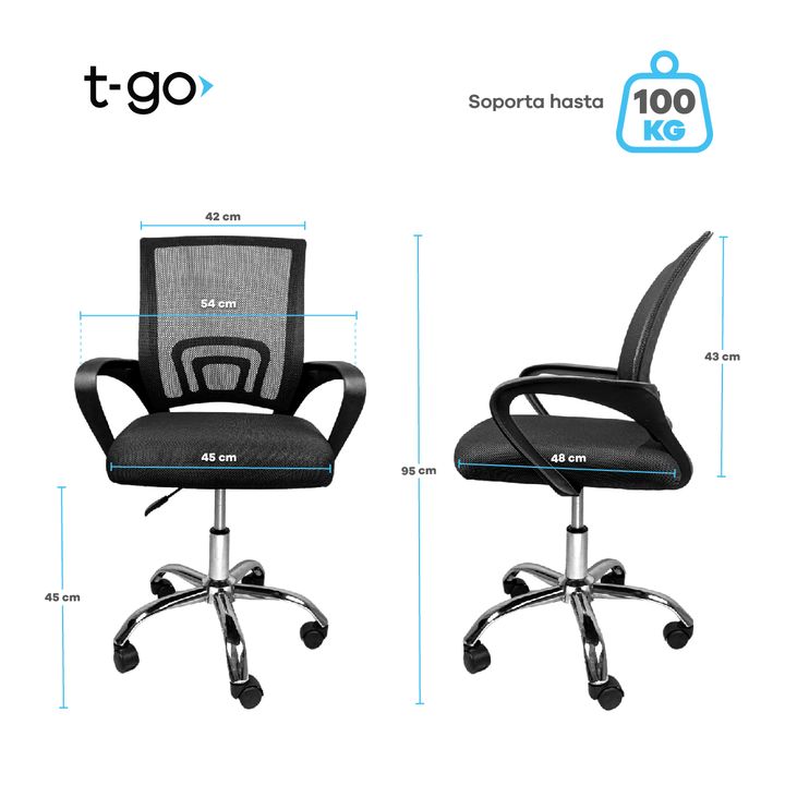 SILLA T-GO DE OFICINA CON SOPORTE LUMBAR FIJO BENEFICIOS * Diseñada para personas que trabajan frente a una computadora muchas horas. * Espaldar ergonómico que se adapta a la curvatura natural de tu columna vertebral * Asiento transpirable que te mantiene fresco y seco. * Apoyabrazos reforzados que ...