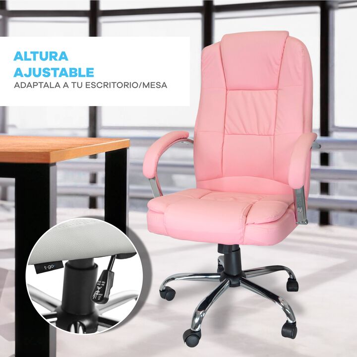 SILLA DE ESCRITORIO T-GO ERGONÓMICA ACOLCHADA BENEFICIOS * Recomendada para quienes trabajan varias horas frente a una computadora. * Espaldar ergonómico para mantener una buena postura. * Asiento acolchado con cuádruple capa de espuma. Máximo confort. * Ruedas silenciosas y con giro de 360 grados p...