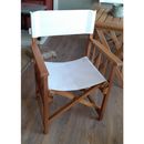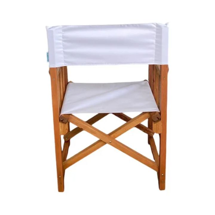 Sillón Director de madera Eucaliptus Grandis macizo. Plegable. Tela en Lona Blanca. Madera Impregnada para su mejor mantenimiento y durabilidad. Medidas: Alto: 0.88 mts. Profundidad: 0.49 mts. Ancho: 0.61 mts.