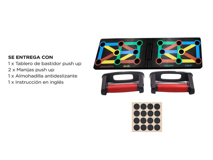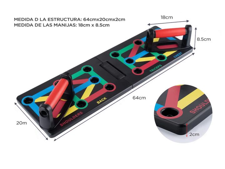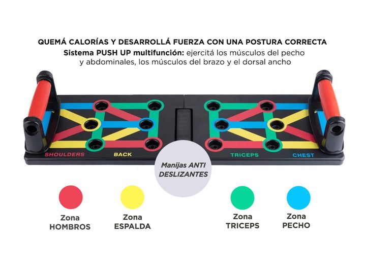 Tabla push up multifunción: diferentes tablas push up codificadas por colores se enfocan en músculos específicos trabajados, ejercitan los músculos del pecho y abdominales, los músculos del brazo y el dorsal ancho (pecho azul, hombros rojos, espalda amarilla y tríceps verde). Postura correcta: el si...