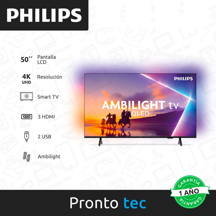 ¡Innovador, inmersivo, simplemente increíble! Preparate para tener los colores brillantes de la mano de tu smart tv Phillips QLED 4K, con Ambilight inmersivo, Sonido 3D con Dolby Atmos igual que como en el cine, y todo de la mano de un sistema operativo para ver todo lo que te gusta intensificando e...
