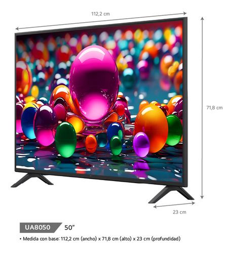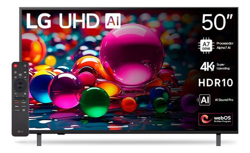 Smart TV LG UHD AI UA80 4K de 50 pulgadas - 50UA8050PSA Funciones principales - Colores y detalles impresionantes con HDR10 Pro 4K - Calidad de imagen 4K, imágenes mejoradas y sonido envolvente gracias al procesador alpha 7 4K AI Gen8 - Nuevo botón de IA, controles de voz y funciones de arrastrar y ...