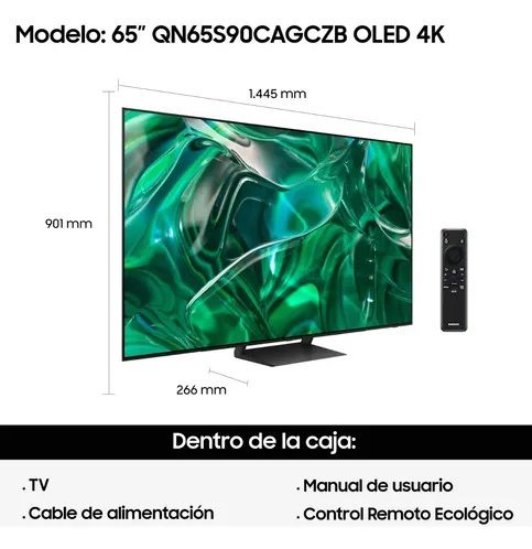 SMART TV SAMSUNG 65 PULGADAS OLED 4K S90D - QN65S90CAGCZB Descubre una nueva forma de disfrutar tus contenidos favoritos con el Smart TV Samsung 65 OLED 4K. Su innovadora tecnología de panel OLED ofrece colores intensos, negros profundos y detalles impresionantes, para que cada escena se vea realist...