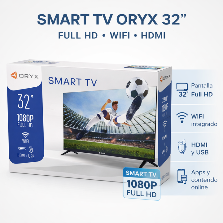 Descripción : ----Este Smart tv no tiene preinstalado las aplicaciones de NETFLIX y YOUTUBE, pero podes descargar estas aplicaciones sin problemas desde la tienda Oryx que ya viene integrada al televisor---- El Smart TV Oryx OR-STV32 32 es una opción práctica y compacta para disfrutar entretenimient...