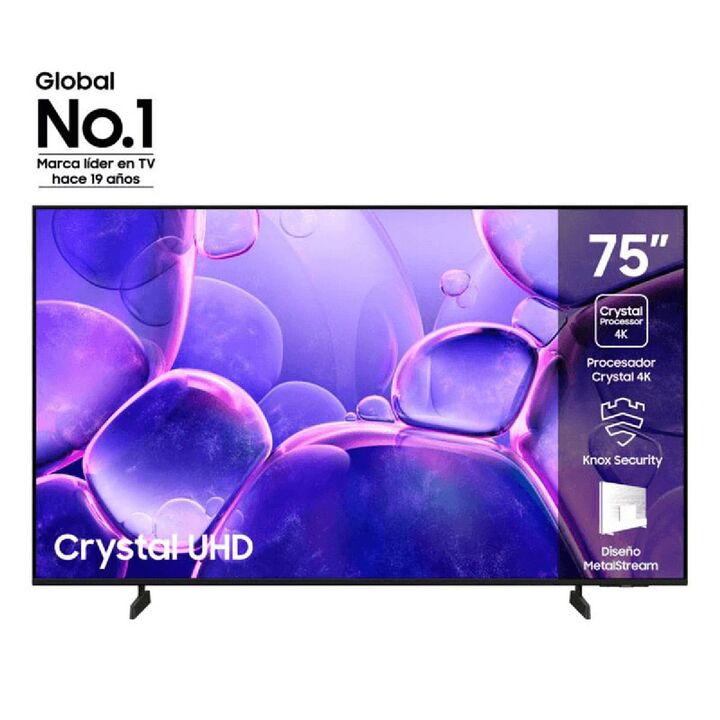 Smart TV Samsung 75 Crystal UHD 4K: Cine en Casa con Diseño Premium Llevá el entretenimiento a una escala épica con el Samsung 75 (UN75U8000FGCZB). Esta pantalla gigante de 75 pulgadas redefine lo que significa mirar tele en casa. Con su exclusivo diseño MetalStream de terminación metálica y marcos ...
