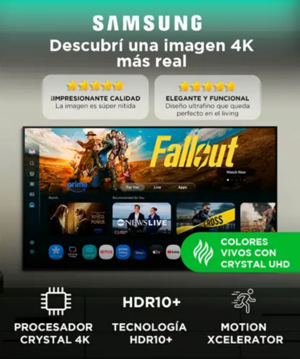 Calidad de imagen que sobresale El televisor Samsung U8000F de 55 pulgadas ofrece una experiencia visual imponente gracias a su resolución 4K UHD y al procesador Crystal 4K que escala contenido de menor resolución. Cada escena muestra detalles precisos y colores intensos en toda su amplitud. Tecnolo...