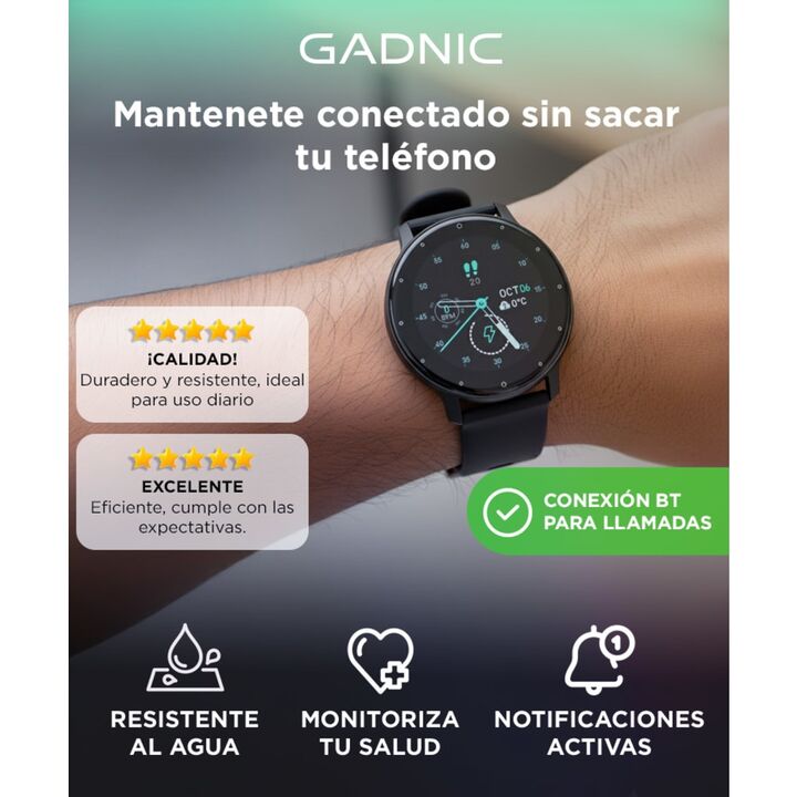 ¡Nuevo SmartWatch by Gadnic! Gadnic presenta el nuevo Smart Watch SM92R compatible con Android y IOS Recibí y Rechaza notificaciones en tiempo real: El reloj pulsera by Gadnic inteligente te permite sincronizar las notificaciones de las apps de tu teléfono y recibir o rechazar llamadas con un solo t...