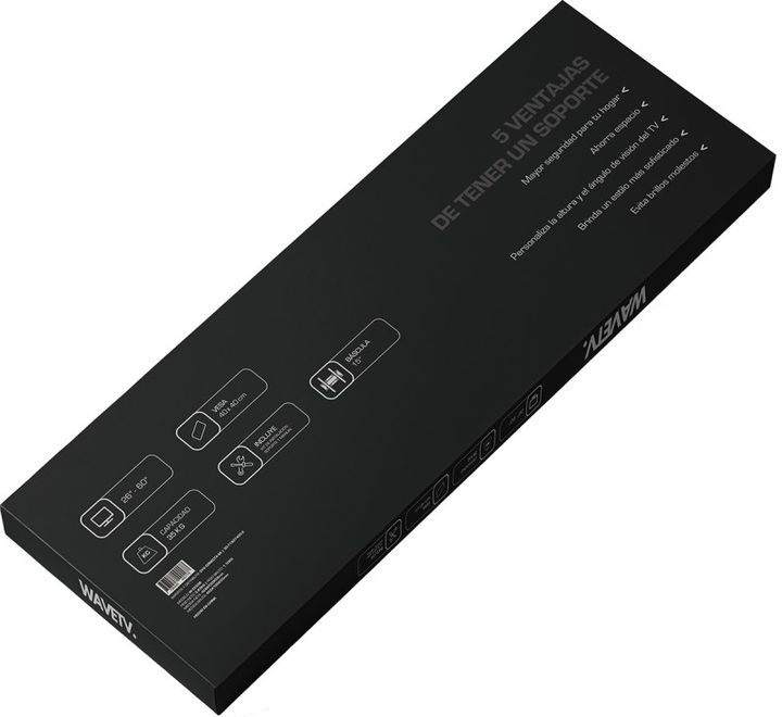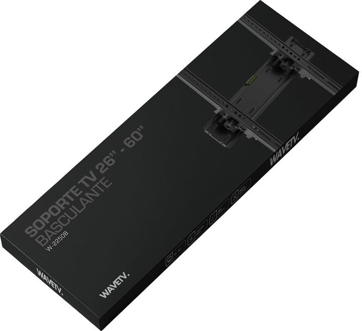 SOPORTE W-2250B PARA TV LED LCD WAVE-TV Soporte basculante para pantallas medianas, con inclinación hasta 15°. Compatible con VESA 40x40 cm y carga máxima de 35 kg. -Tipo: Basculante -Modelo W-2250B