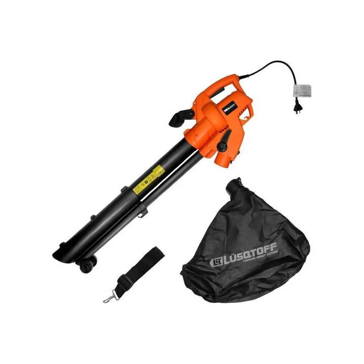 Soplador aspirador Lusqtoff 2400W, 45L, ideal para jardines. Tritura y embolsa residuos fácilmente. ¡Mantené tu espacio verde impecable!