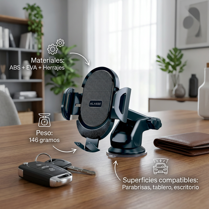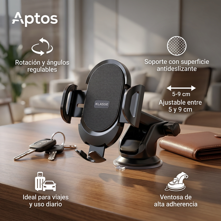 El soporte de celular para auto klasse con ventosa brinda una sujeción práctica y cómoda para el uso diario.