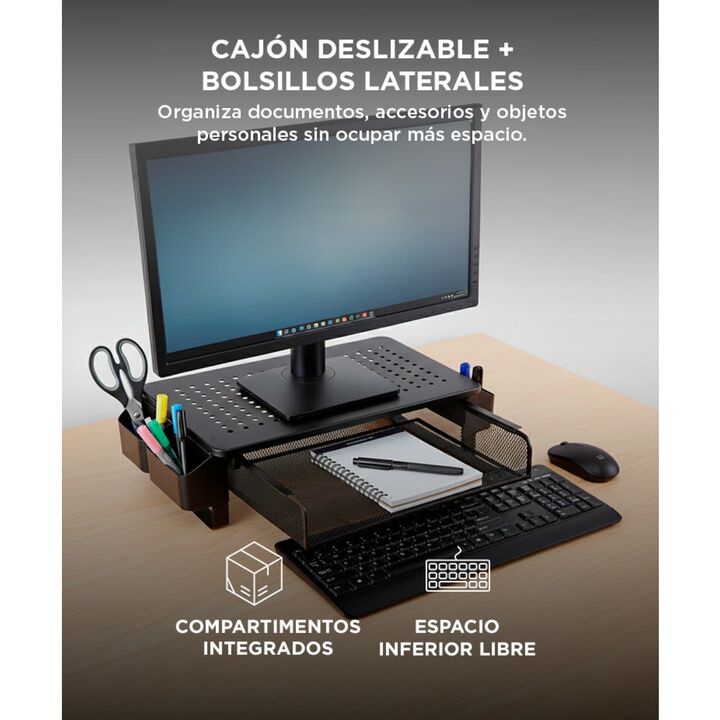 ¡Nuevo e Innovador Soporte Gadnic! El soporte para monitor, computadora o impresora presenta un diseño moderno y elegante que eleva su monitor para una máxima comodidad, reduce la tensión de los ojos y el cuello, tiene espacio debajo para un teclado, un práctico cajón para papel adicional e incluso ...