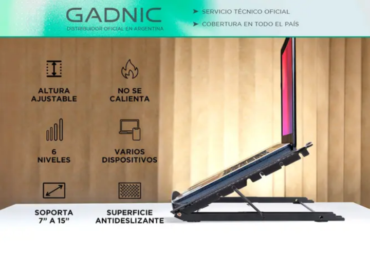 ¡Nuevo Soporte Para Computadora Portátil Gadnic! Soporte ajustable para laptop, tableta, iPad, Portátil, seguro y estable, fabricado con metal de alta caliad y gomas antideslizamiento muy estables en la parte inferior que hacen que no se raye tu valiosa laptop ni dispositivos móviles, además de prop...