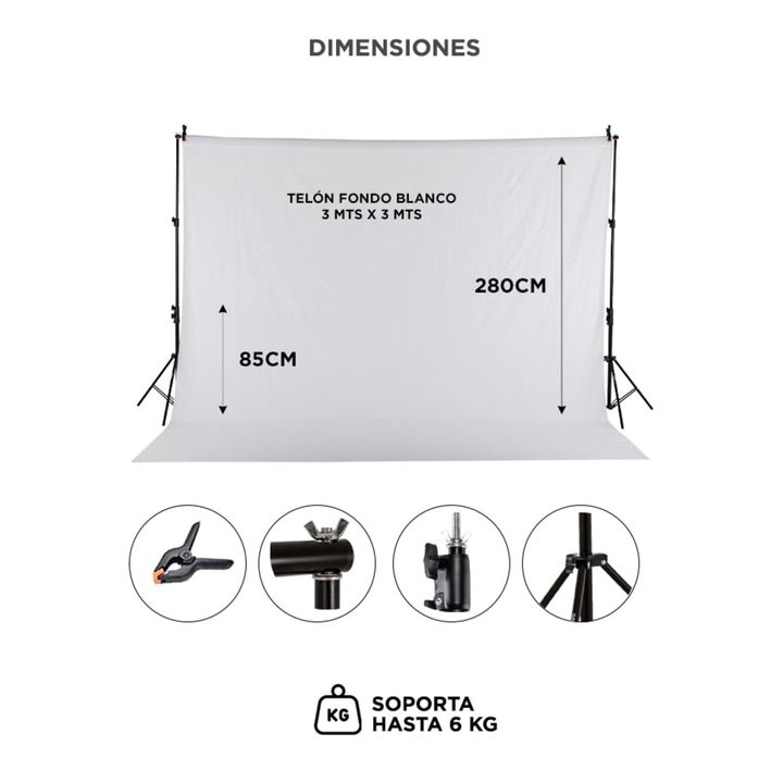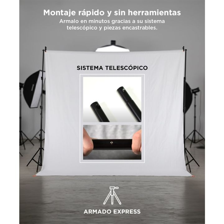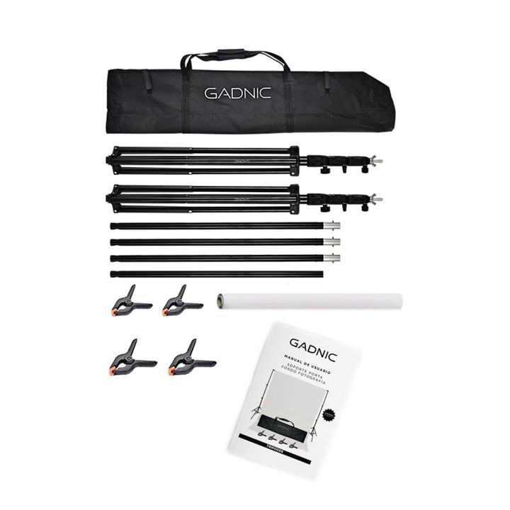 El Sistema de Soporte de Fondos Gadnic es una estructura ideal para estudios fotográficos o uso doméstico, diseñada para ofrecer una sujeción firme y estable en una variedad de ambientes. Este sistema es ligero, resistente y ajustable, con dos trípodes y una barra transversal de cuatro secciones que...