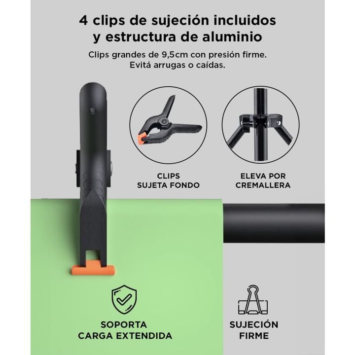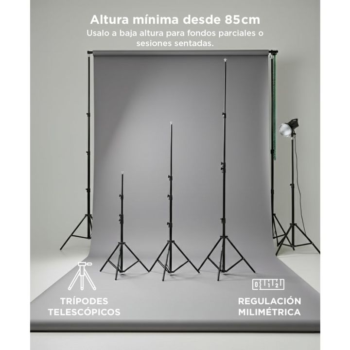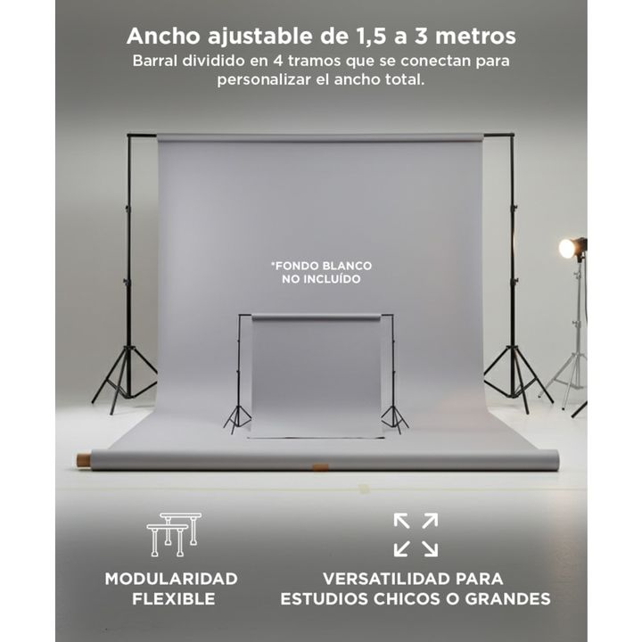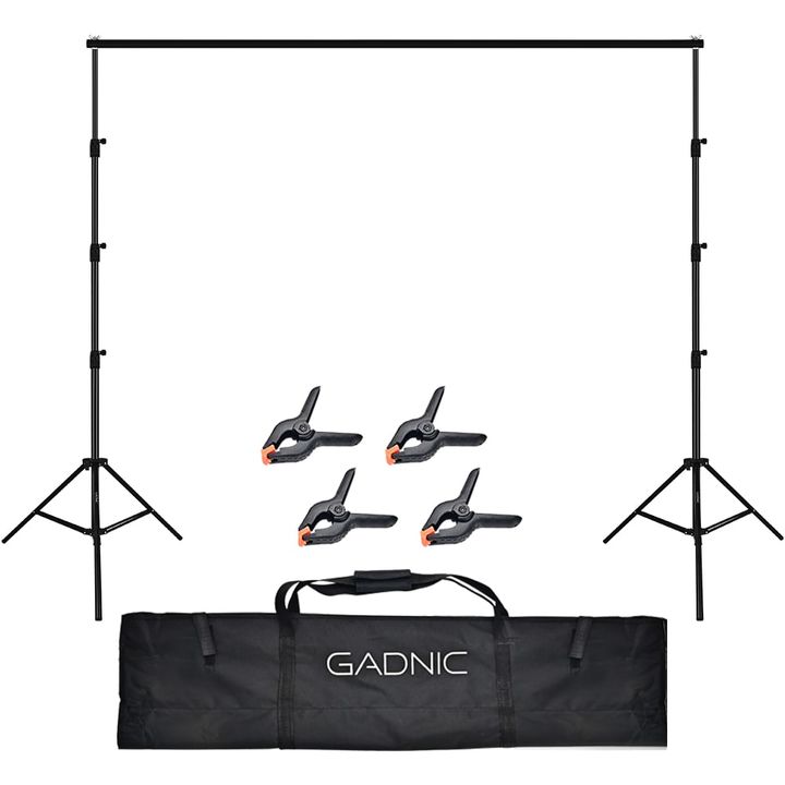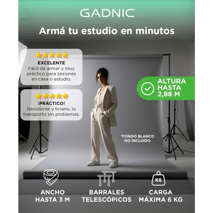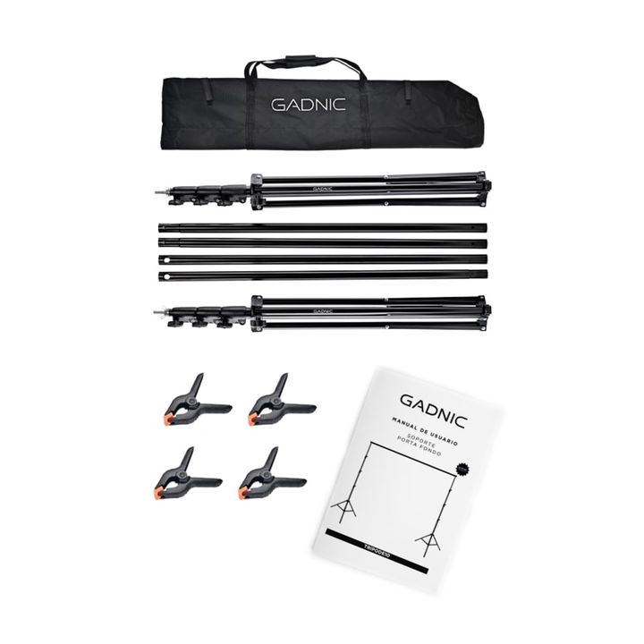 Perfecto para estudios de fotografía y uso hogareño, el Sistema de Soporte de Fondos Gadnic ofrece una estructura resistente y ajustable, ideal para cualquier aplicación fotográfica. Este sistema incluye dos trípodes y una barra cruzada de cuatro secciones, que permite un ancho ajustable hasta 3 met...