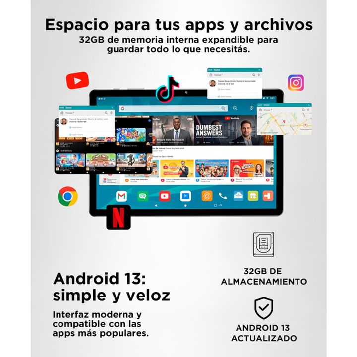 Gadnic presenta la nueva tablet de 7 Pulgadas: Expansión: Almacenamiento extensible hasta 128GB mediante tarjeta TF, permitiendo un gran espacio adicional para almacenar aplicaciones, fotos, videos y otros archivos importantes sin preocuparse por la falta de espacio. Interfaz: Amigable y personaliza...