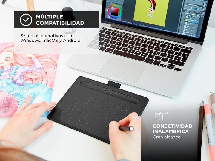 WACOM presenta el lanzamiento de la nueva Tableta Intuos con Bluetooth: Lápiz sin Batería: La tecnología EMR (Resonancia Electromagnética) asegura un uso continuo sin necesidad de recargar el lápiz. 4 Teclas ExpressKeys Personalizables: Configura las teclas de acceso rápido para mejorar tu productiv...