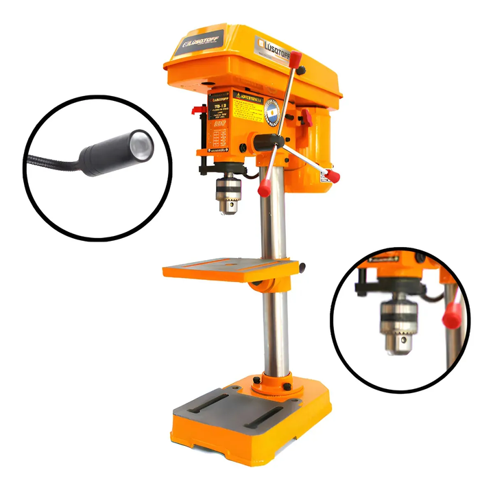 TALADRO DE BANCO AGUJEREADORA 16 MM LUSQTOFF TB16 450W ESPECIFICACIONES: • Potencia: 450W - 1,2HP • Voltaje: 220 V - 50 Hz • Velocidad de trabajo: 300-2550 RPM • Mandril: 16 mm o 5/8 • Recorrido de husillo: 65 mm • 12 velocidades • Peso: 33 Kg * Conicidad de husillo MT2 * Numero de velocidades 12 * ...