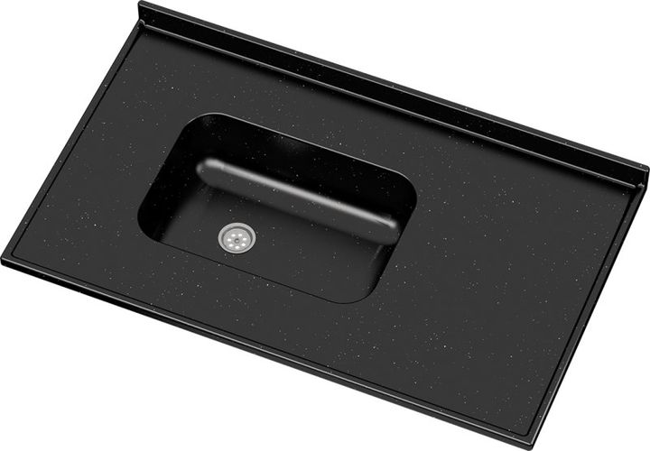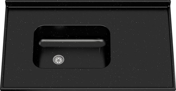 TAPA MESADA MM603 1.00 X 0.60M NEGRO MSMARMOLES Mesada de Cocina 1,00x0,60cm con zocaloNegro -Bacha 0,45x0,30x0,15mt - Mesada de Cocina de Mármol Sintético, con zocalo, bacha integral. La mesada y la bacha forman una sola pieza, sin juntas ni uniones. El fino borde antiderrame que se encuentra alred...