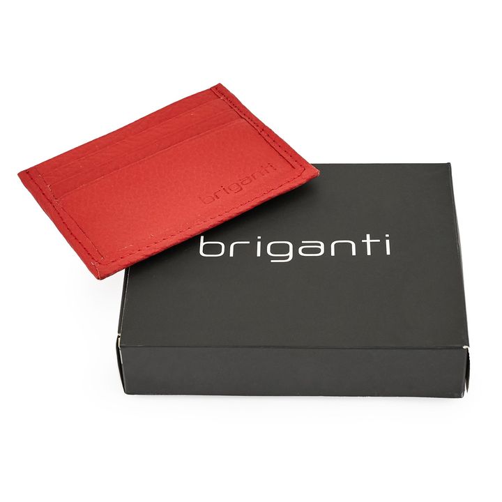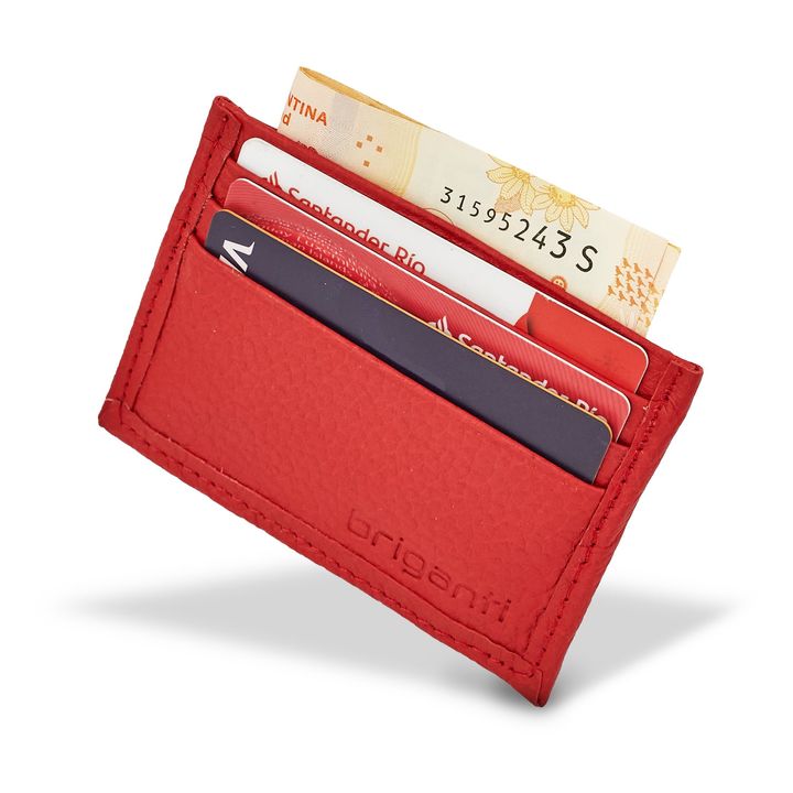 Bronte confeccionado con cuero rojo de primera calidad. El tarjetero ideal para llevar a todos lados por su durabilidad y resistencia. Cuanta con capacidad para 8 tarjetas. - Marca. Briganti - Material Interno: Cuero - Material Externo: Cuero - Articulo: UMBI62046 - Alto: 8 cm. - Ancho: 10 cm. - Det...