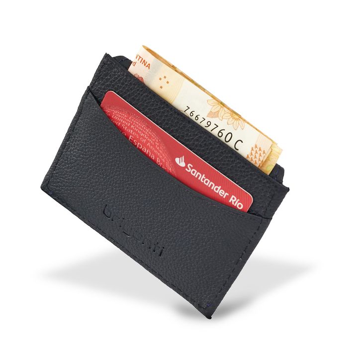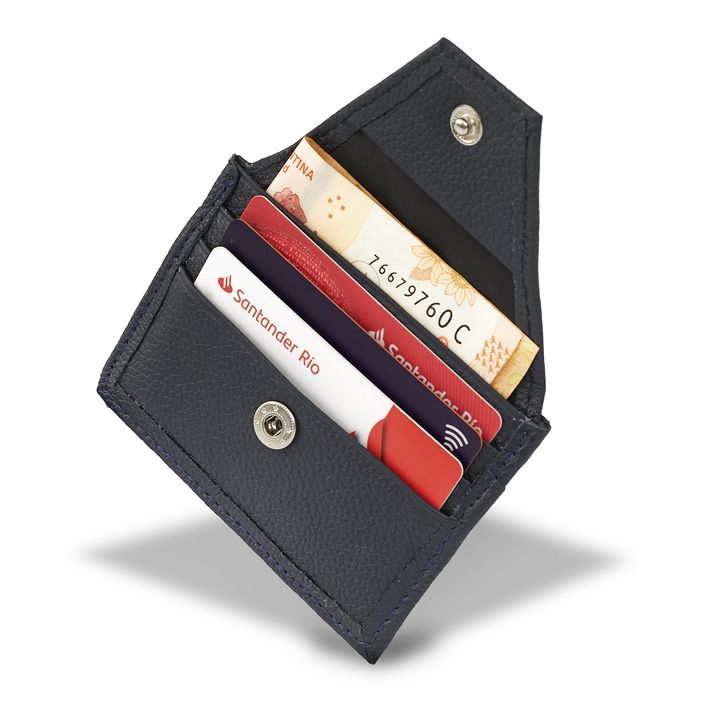 Tarjeteros Nice confeccionados con cuero chocolate de primera calidad. Es un modelo resistente al desgarro y a la abrasión húmeda y seca. Cuanta con solapa con botón y capacidad para 5 tarjetas. - Marca. Briganti - Material Interno: Cuero - Material Externo: Cuero - Articulo: UMBI62045 - Alto: 8 cm....