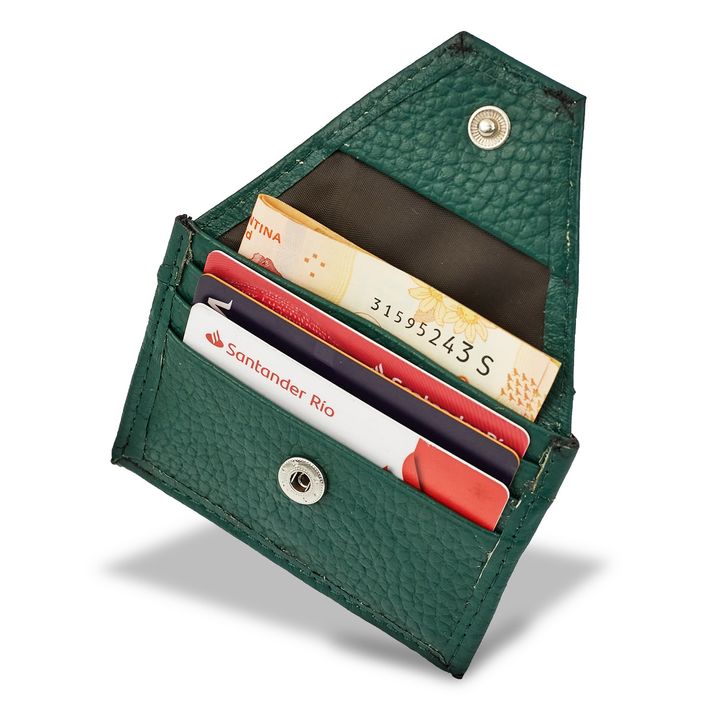 Tarjeteros Nice confeccionados con cuero chocolate de primera calidad. Es un modelo resistente al desgarro y a la abrasión húmeda y seca. Cuanta con solapa con botón y capacidad para 5 tarjetas. - Marca. Briganti - Material Interno: Cuero - Material Externo: Cuero - Articulo: UMBI62045 - Alto: 8 cm....