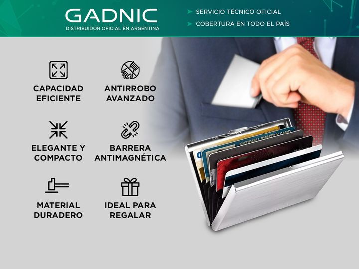 Acerca de Tarjetero Rígido Anti-Robo Gadnic Wallet4 Acero Inoxidable ¡Mantén tus tarjetas seguras con el Tarjetero Antirrobo Gadnic de Acero Inoxidable! Material Duradero: Este tarjetero está construido con acero inoxidable de alta calidad, brindando resistencia y durabilidad para proteger tus tarje...