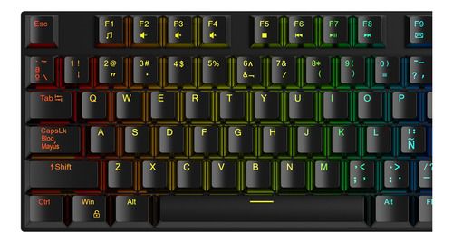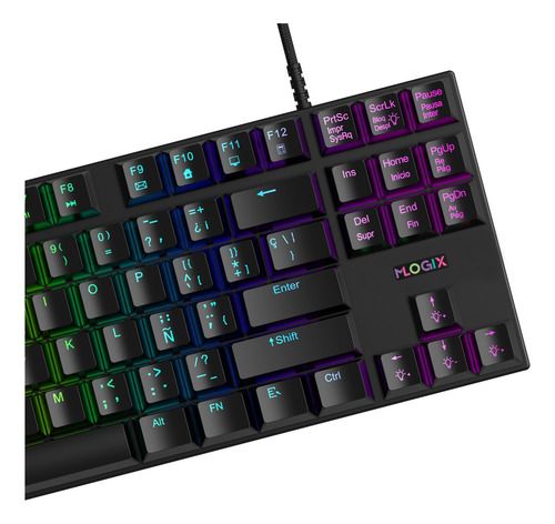 Teclado Gamer Compacto MLogix MK87 Ghost Buster RGB Negro Teclado Gaming mecanico anti-ghosting, super compacto de 87 teclas , botones de switch azul, letra Ñ, dos niveles de altura para mayor comodidad e iluminacion RGB. Precisión mecánica y estilo RGB en formato compacto. El teclado MK87 Ghost Bus...