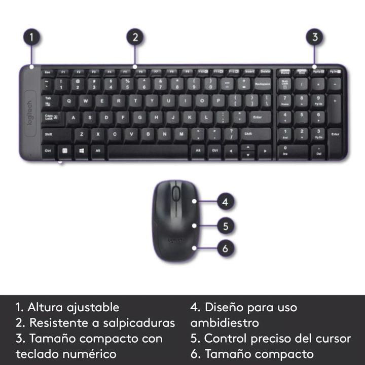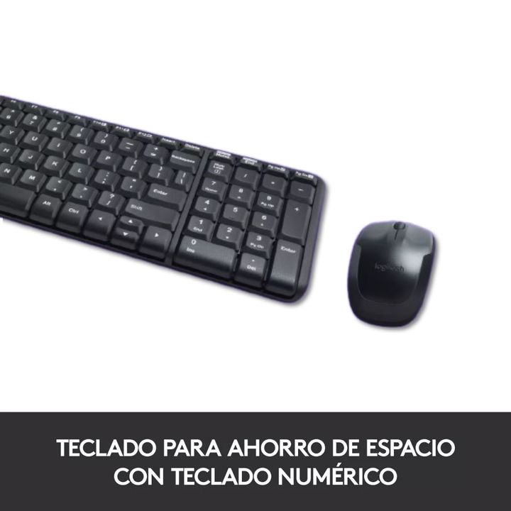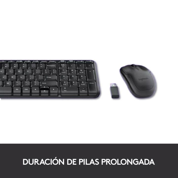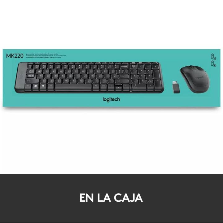 teclado y mouse Logitech MK220: Dimensiones Teclado: Altura: 112 mm Ancho: 381 mm Profundidad: 17.78 mm Peso: 320 g Mouse: Altura: 107 mm Ancho: 60 mm Profundidad: 40 mm Peso: 112 g Especificaciones Técnicas Radio de Acción Inalámbrico: Hasta 10 metros (dependiendo del entorno y dispositivos). Tecla...
