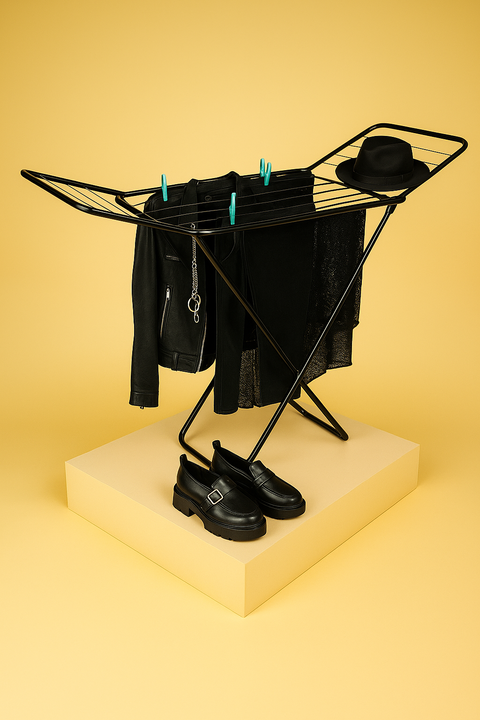 HOGAR ACTUAL TENDER DE ACERO NEGRO 1.60MTRS SKU: 142949-N Tendedero plegable de pie con alas, fabricado en acero cubierto con pintura epoxi resistente a la humedad. Posee tacos plásticos en la base para evitar que se oxide y que raye el piso. Medidas extendido: Largo 171 cm, ancho 46 cm, alto 95 cm....