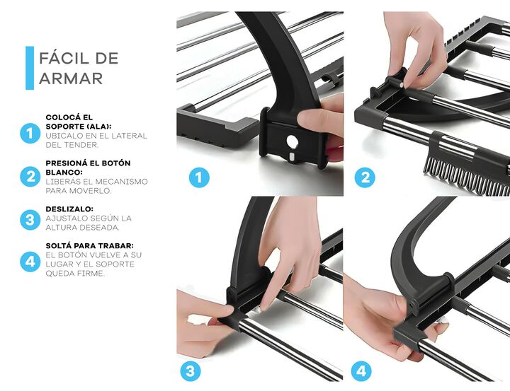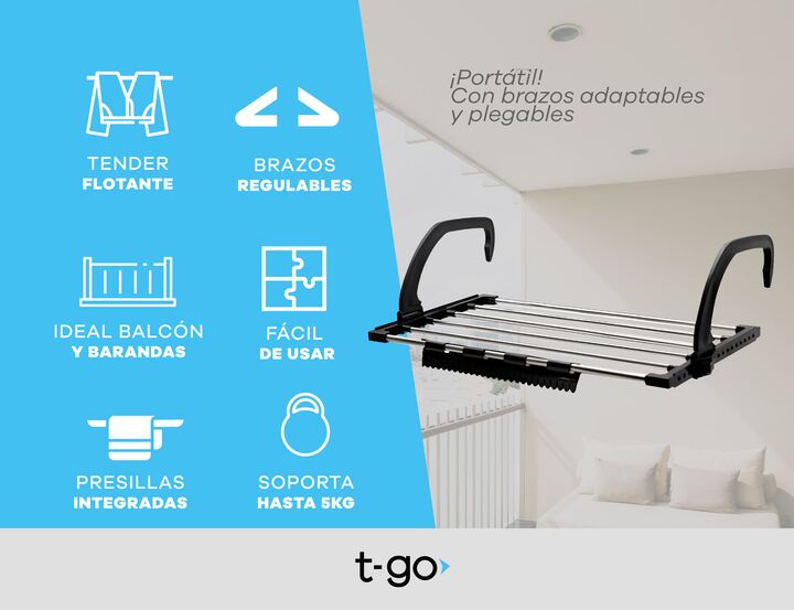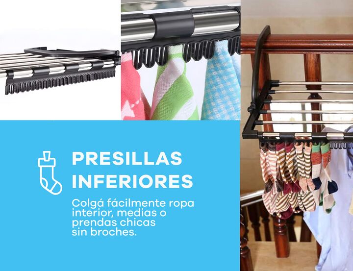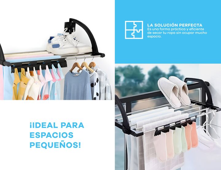 Tender Colgante plegable con broches integrados -Diseño colgante: se adapta a barandas de balcón, aberturas, baño y estructuras firmes. -Compacto y funcional: ideal para departamentos y espacios reducidos. -Broches integrados: colgá fácilmente ropa interior, medias o prendas chicas sin broches. -Est...