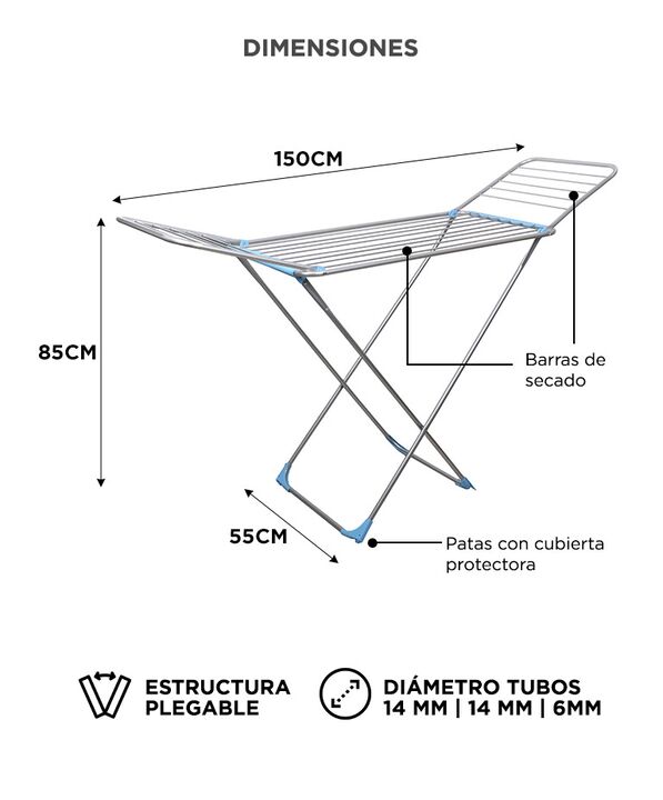 Gran capacidad para secar múltiples prendas El Tender Plegable Gadnic ofrece una amplia superficie de secado que permite colgar varias prendas al mismo tiempo. Resulta ideal para familias o para quienes lavan grandes cantidades de ropa en cada ciclo. Diseño plegable que optimiza el espacio del hogar...