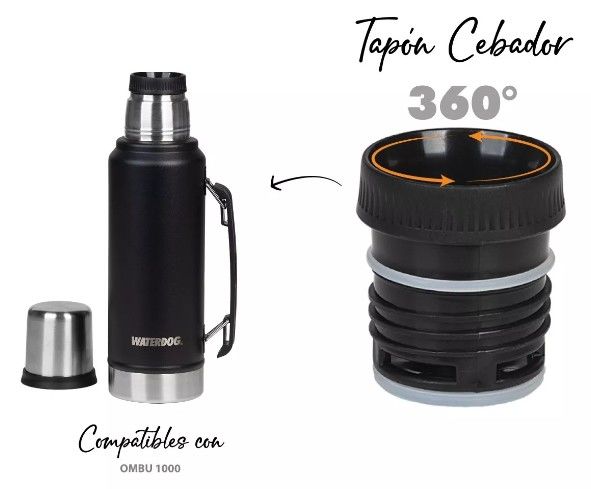Termo de acero inoxidable de Acero AISI 304 Capacidad: 1000 cc. Con manija de agarre y trasnporte Doble pared aislante Recubrimiento powder Coated. Tapón cebador 360° interior de PP.