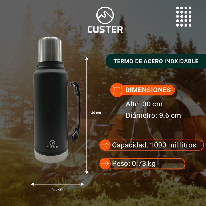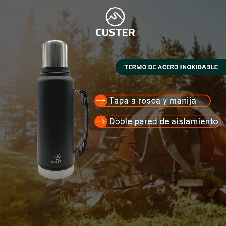 TERMO CUSTER DE 1000ML. Ideal para mantener las bebidas en el dia de camping o para disfrutar de unos ricos mates durante la vida diaria.