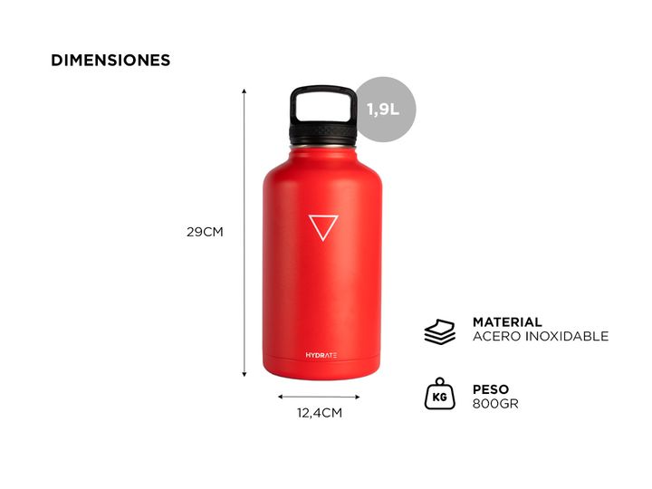 El Termo Hydrate 1.9L Frio Calor es la solución perfecta para aquellos que pasan largas jornadas fuera de casa y desean mantener sus bebidas frías o calientes por horas. Con una capacidad de 1900 ml, este termo de acero inoxidable es ideal para mantenerse hidratado durante todo el día. Su diseño de ...