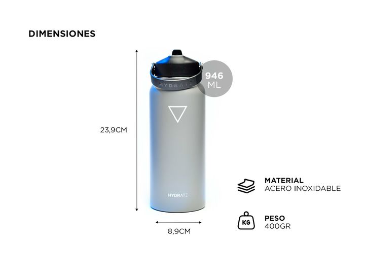 El Termo Hydrate 946ml Frio Calor es el aliado perfecto para mantenerte hidratado en todo momento, ya sea disfrutando de tus actividades al aire libre o en la oficina. Con su diseño elegante y funcional, podrás disfrutar de tus bebidas favoritas a la temperatura ideal durante horas. Especificaciones...