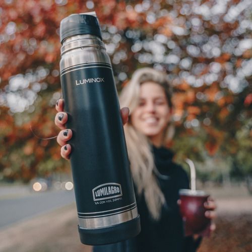 El termo Lumilagro 19054 en color negro combina resistencia y estilo con su construcción íntegra en acero y capacidad de 1 litro. Ideal para mantener tus bebidas a la temperatura deseada por más tiempo.