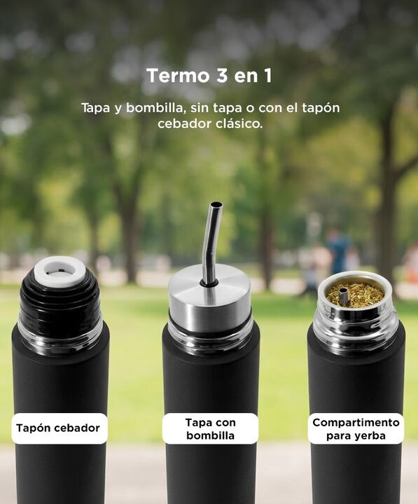 SISTEMA INTEGRADO PARA MATE EN MOVIMIENTO Diseñado para preparar y beber mate directamente desde el termo sin accesorios adicionales. Integra un tubo con filtro que permite cebar y consumir de forma practica y ordenada. Ideal para oficina viajes auto o actividades al aire libre. Simplifica la experi...